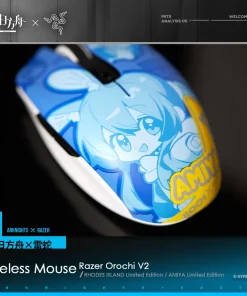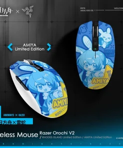 The Arknights × Razer Gaming Mouse combines sleek design with top-tier functionality, making it perfect for fans and gamers alike. Featuring dual-mode wireless connectivity (2.4GHz and Bluetooth), it ensures seamless switching between devices. With Razer 5G optical sensors delivering up to 18,000 DPI and second-generation mechanical micro-switches rated for 60 million clicks, it offers unmatched precision and durability. Its ergonomic design, lightweight construction (approx. 60g), and customizable buttons cater to various grip styles, enhancing comfort and control. The exclusive Rhodes Island and Amiya designs, paired with customizable settings via Razer Synapse 3, make this mouse a stylish and powerful gaming accessory.